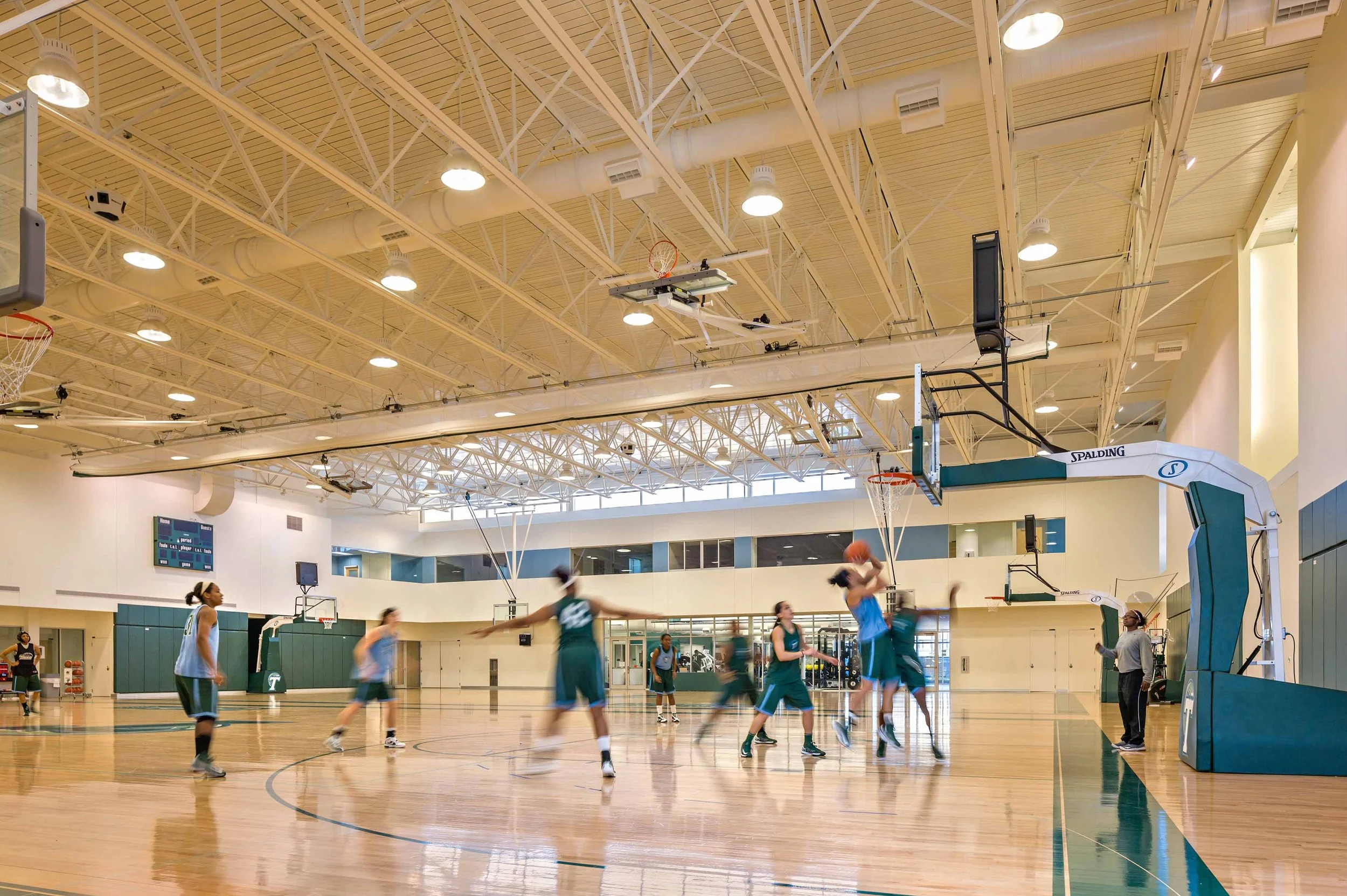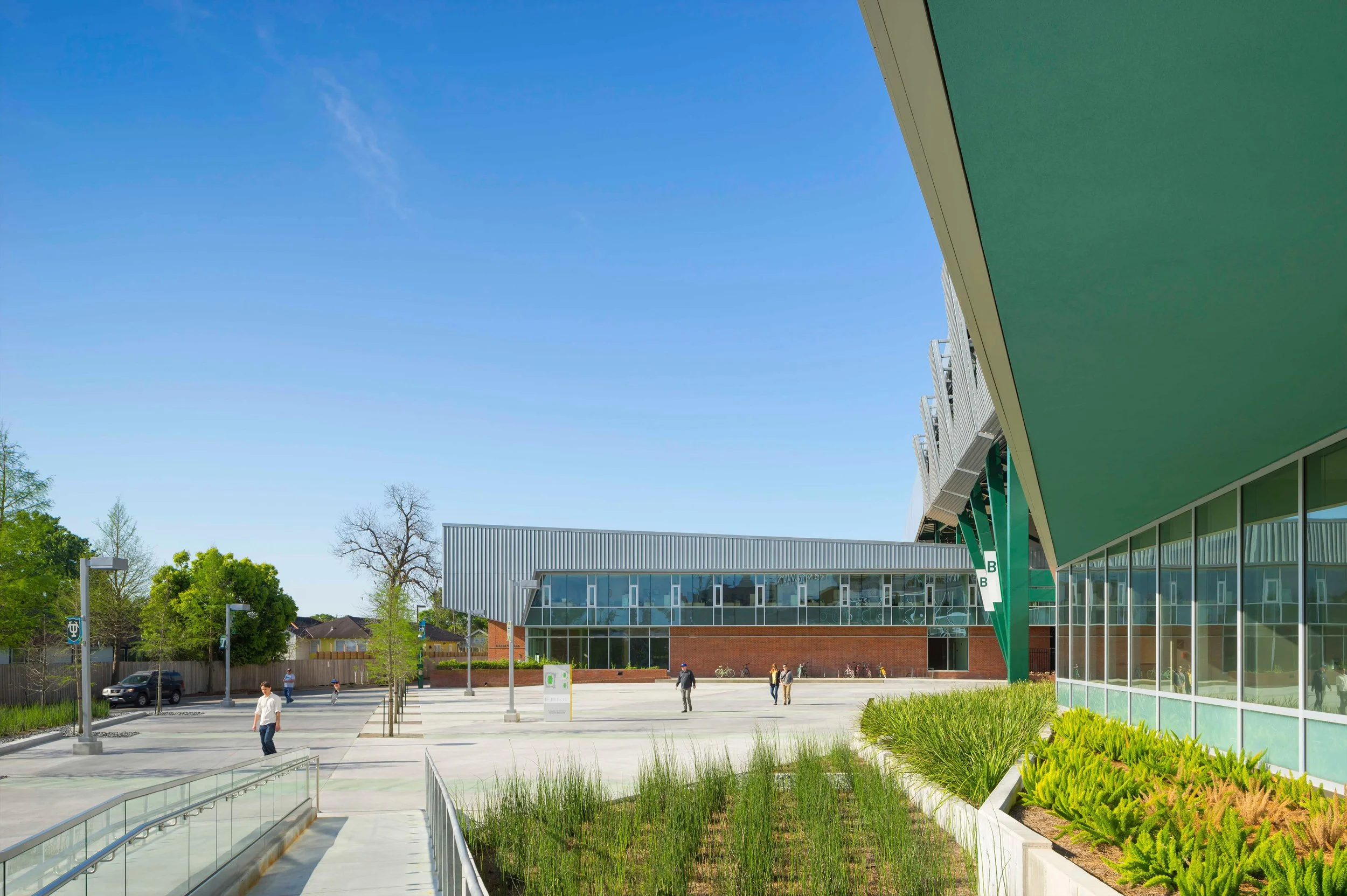 Designed in collaboration with Gould Evans Affiliates, this new practice facility provides a permanent home for Tulane University’s basketball and volleyball programs, featuring a two-court gymnasium, training and locker rooms, conference spaces, and coaches’ offices. Its compact, energy-efficient design—with a tight building envelope and high-performance systems—earned LEED Gold certification while maintaining a cohesive street presence within the athletic campus.