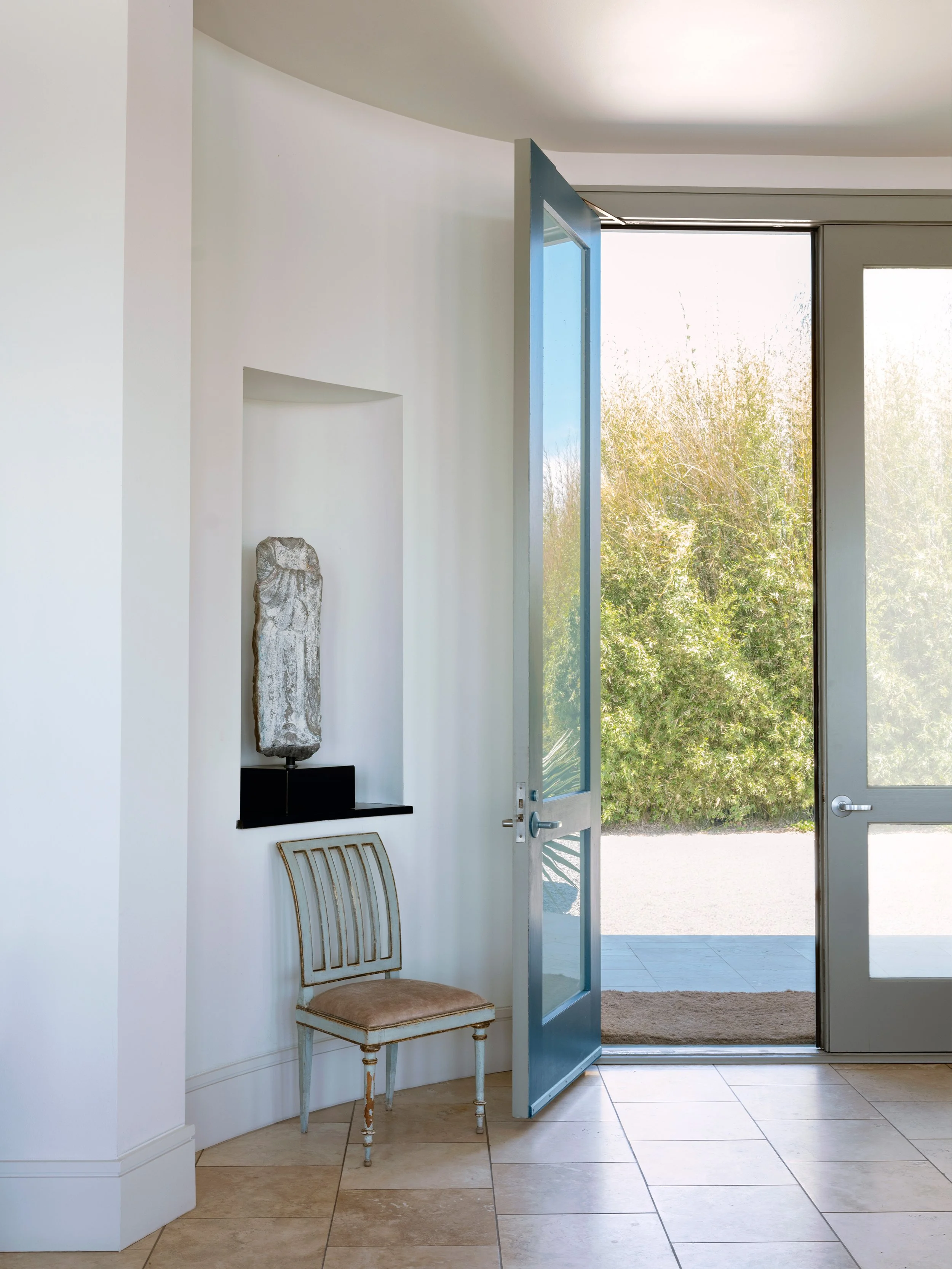Designed for artist George Dunbar, this 2,500-square foot home is a modern reinterpretation of southern Louisiana’s vernacular architecture, set on a peninsula with sweeping views of bayou, marshlands, and abundant wildlife. Blending steep-roofed Creole influences with minimalist materials and expansive glass walls, the tall one-story design maximizes the light, space, and connection to the surrounding landscape, complemented by an artesian pond, lap pool, and curated furnishings.