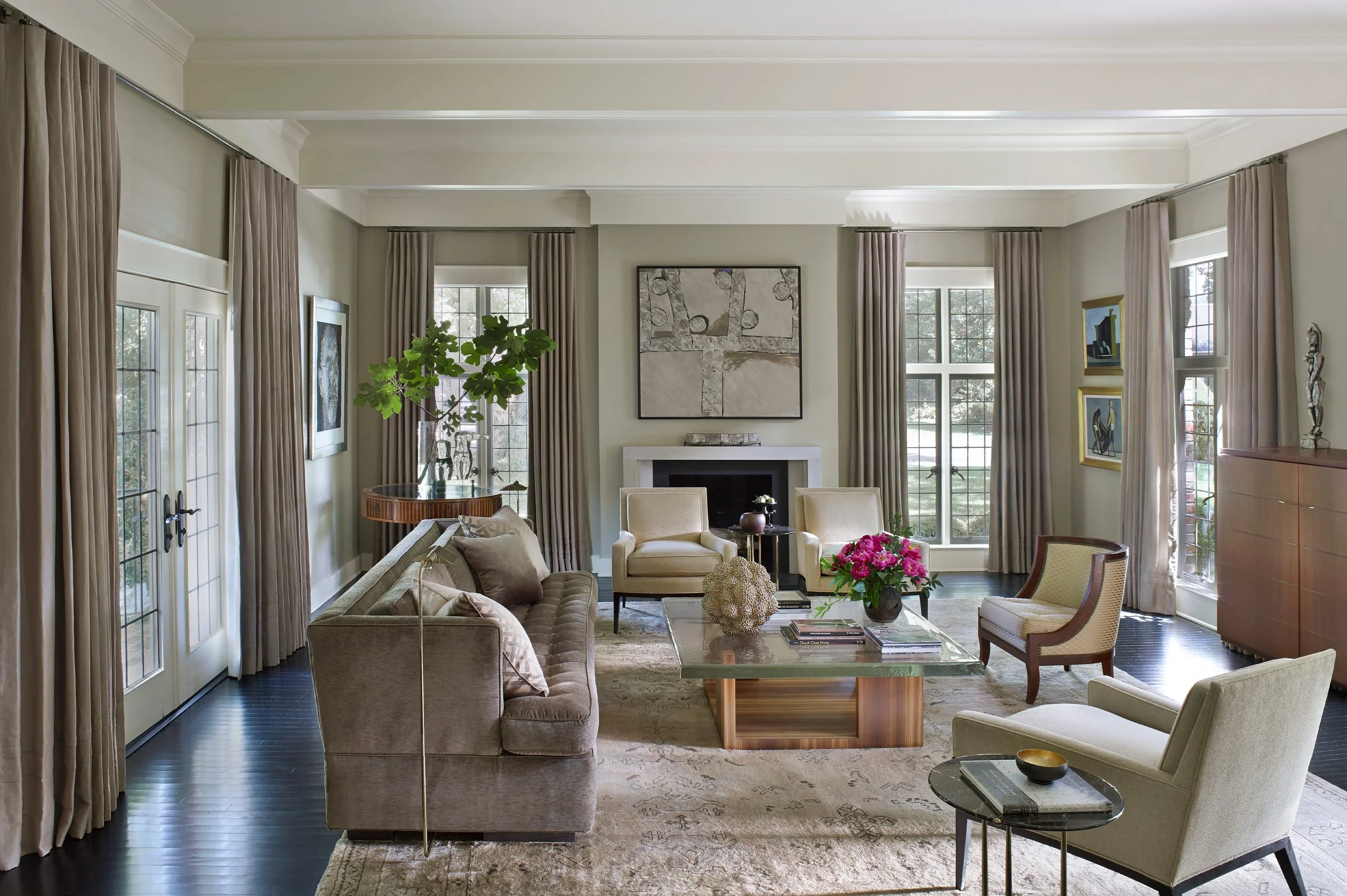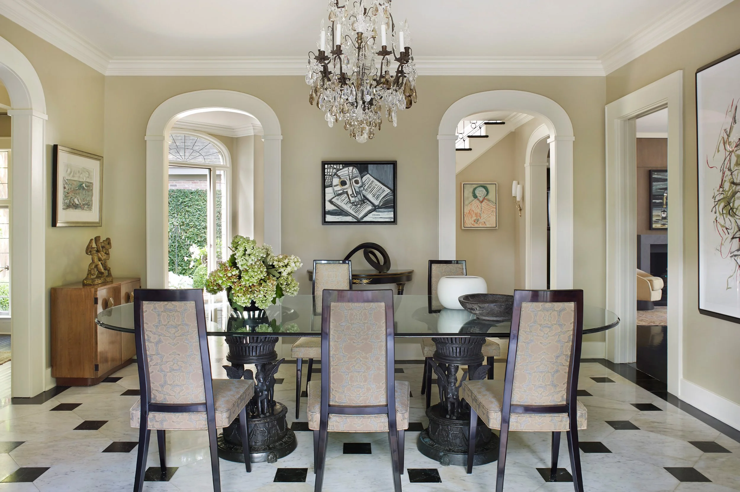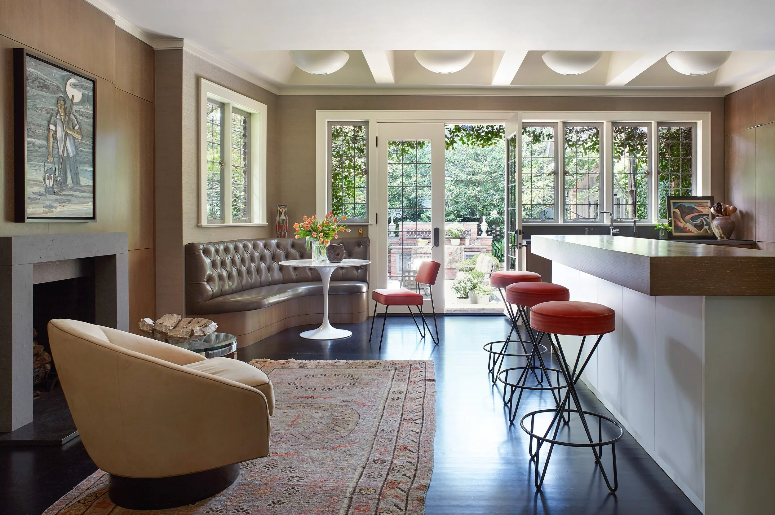 Over more than two decades, this 1920s English-cottage-style brick home has been thoughtfully expanded and renovated to accommodate a growing family, an extensive art collection, and stronger connections between indoor and outdoor living. The most recent updates focus on a redesigned kitchen that serves as a social hub, a mix of timeless and mid-century furnishings, and interiors that balance traditional architecture with modern art and vibrant accents.