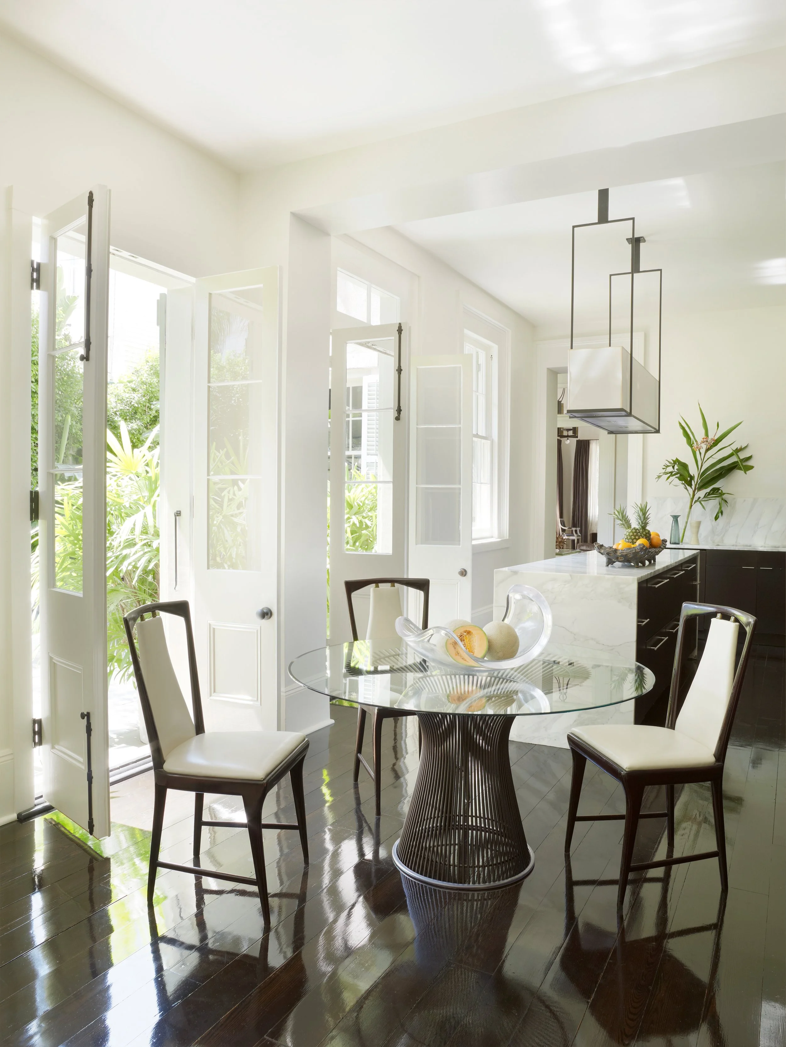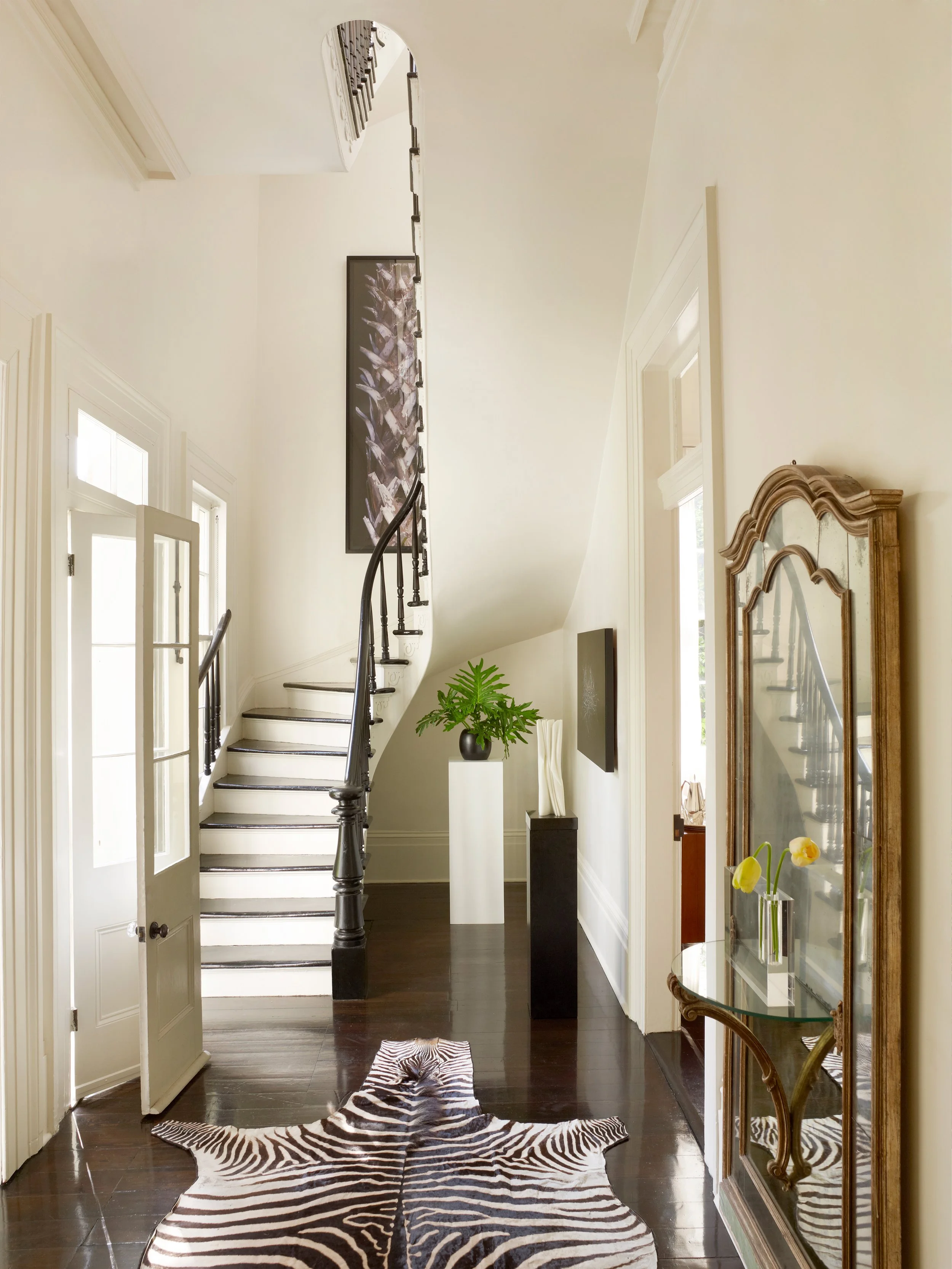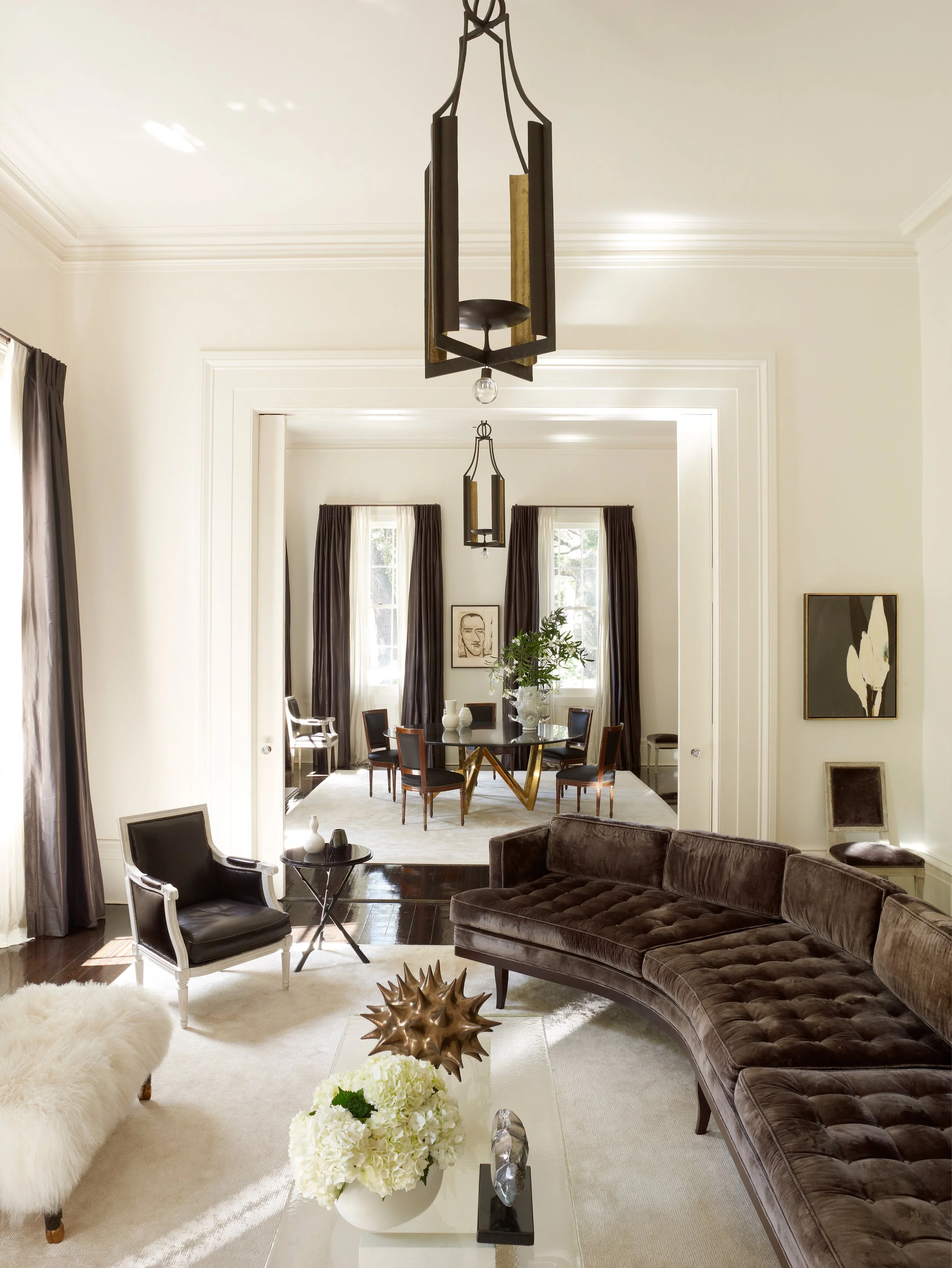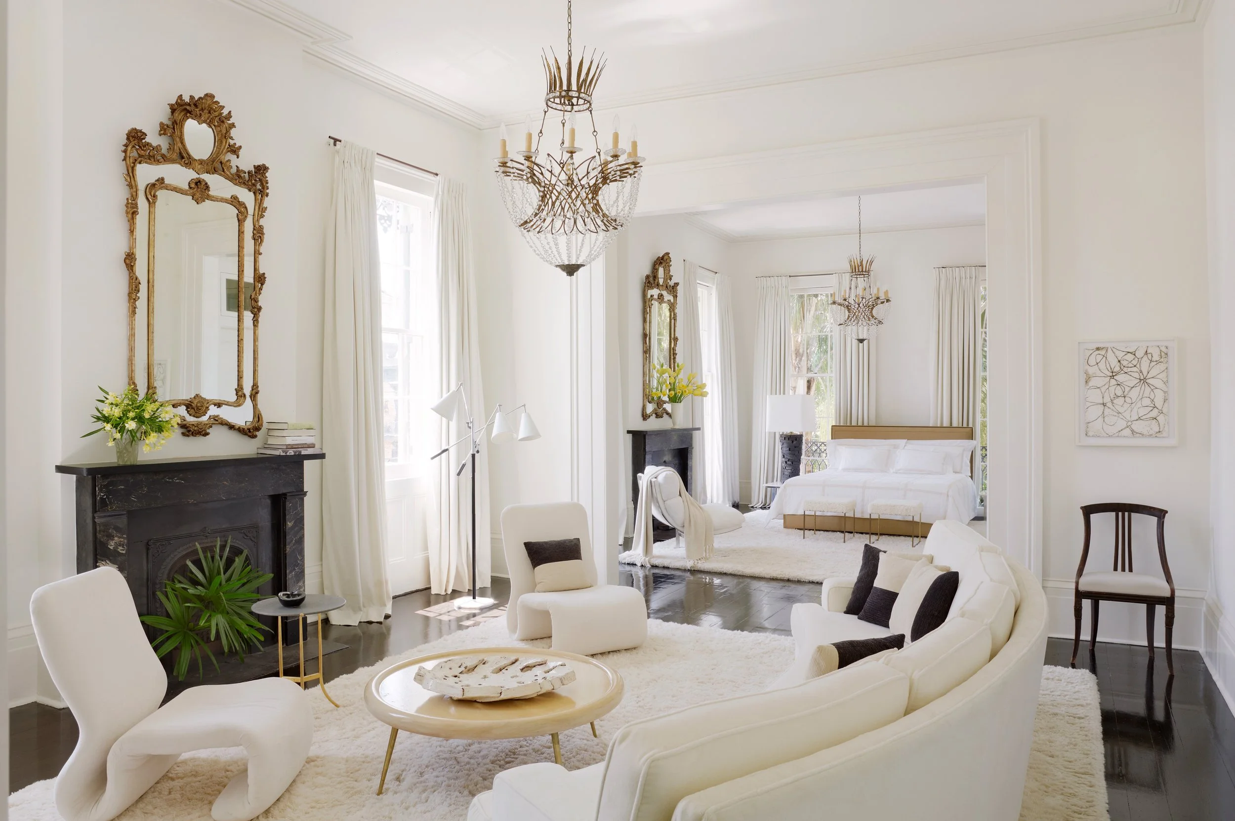 This 1829 Greek Revival house in the Faubourg Marigny was restored to blend its historic character with a bold, modern sensibility. Expansive openings, a striking black-and-white palette, and custom contemporary furnishings are balanced with antiques and original architectural details, creating interiors that honor the past while embracing the present.