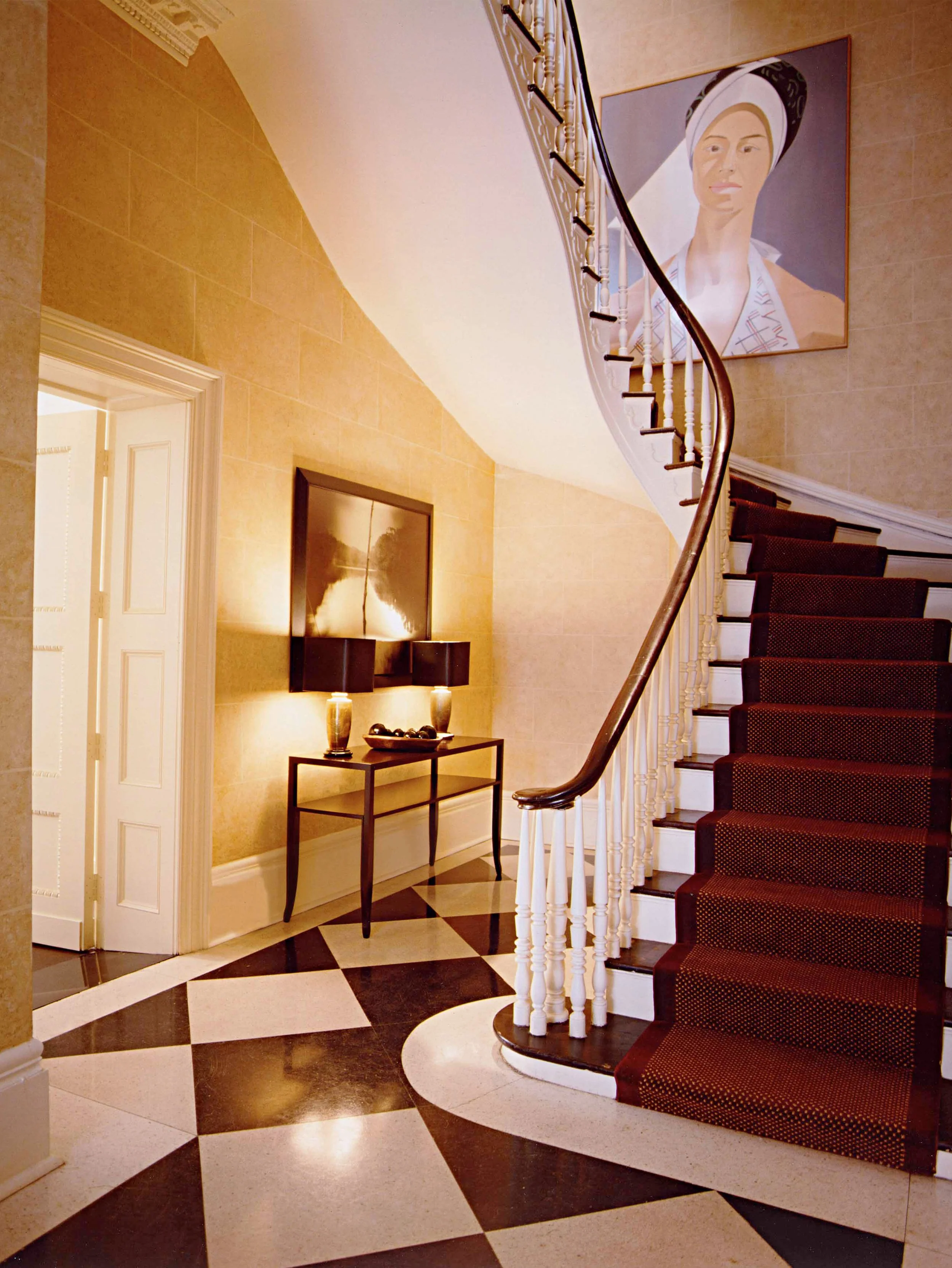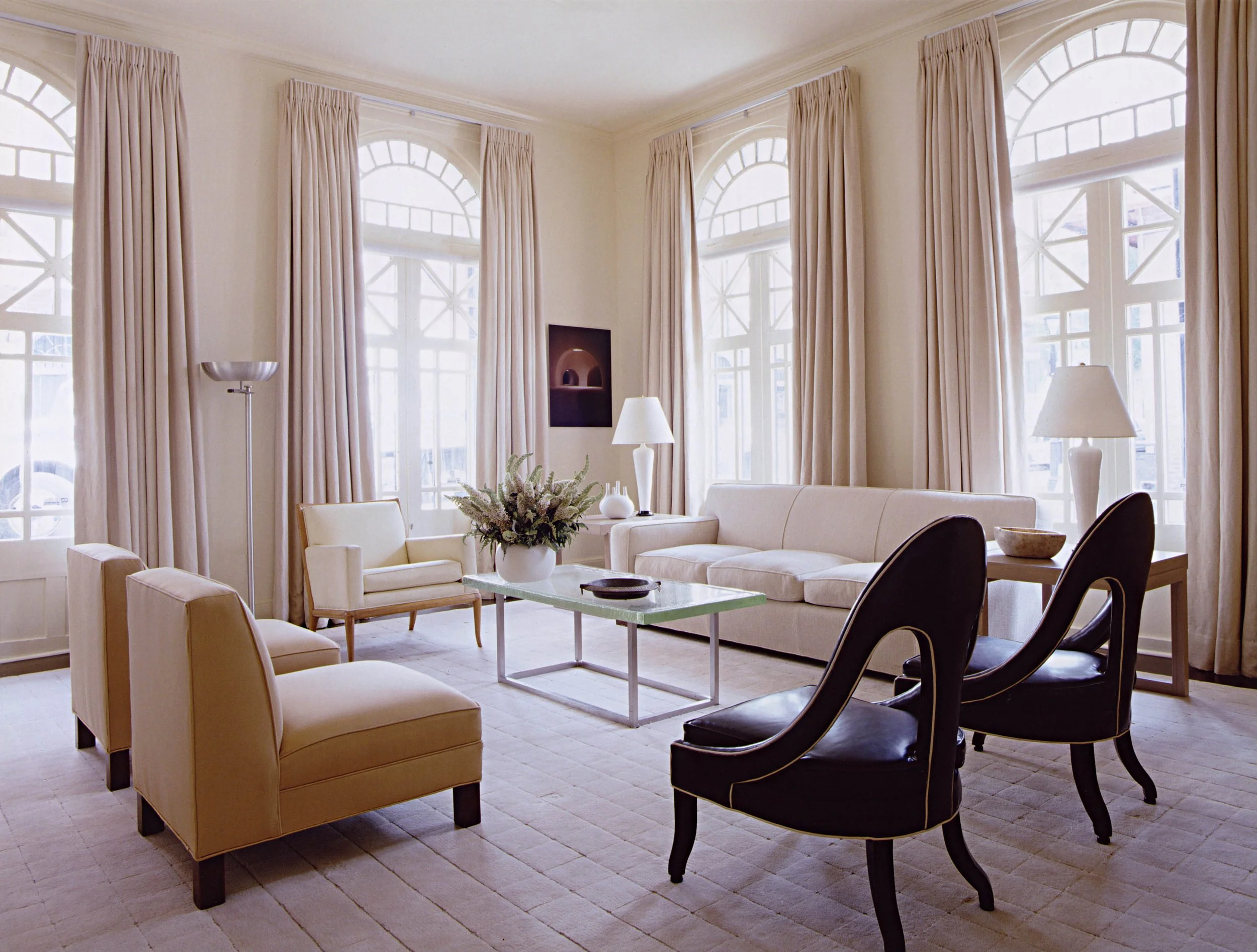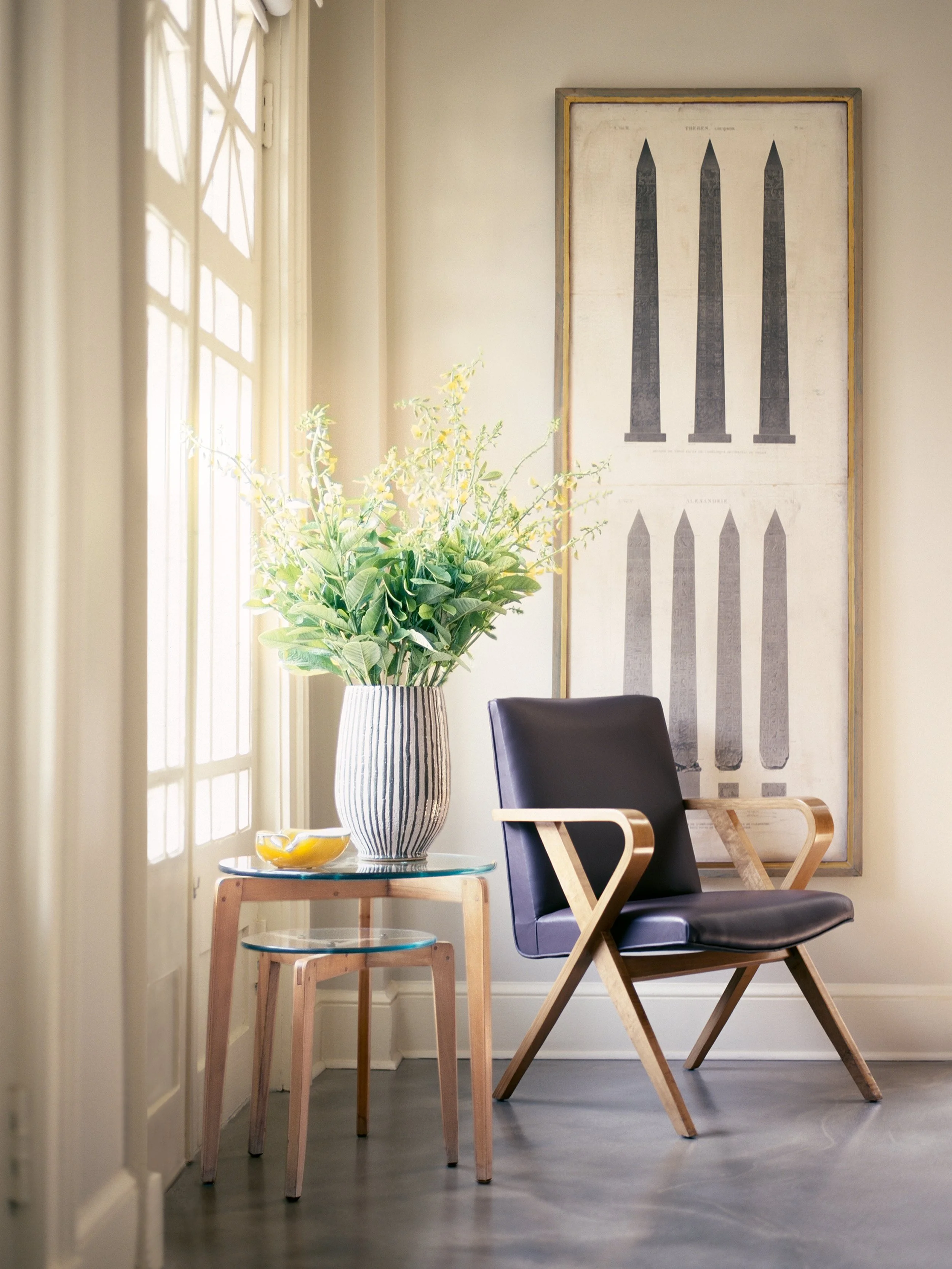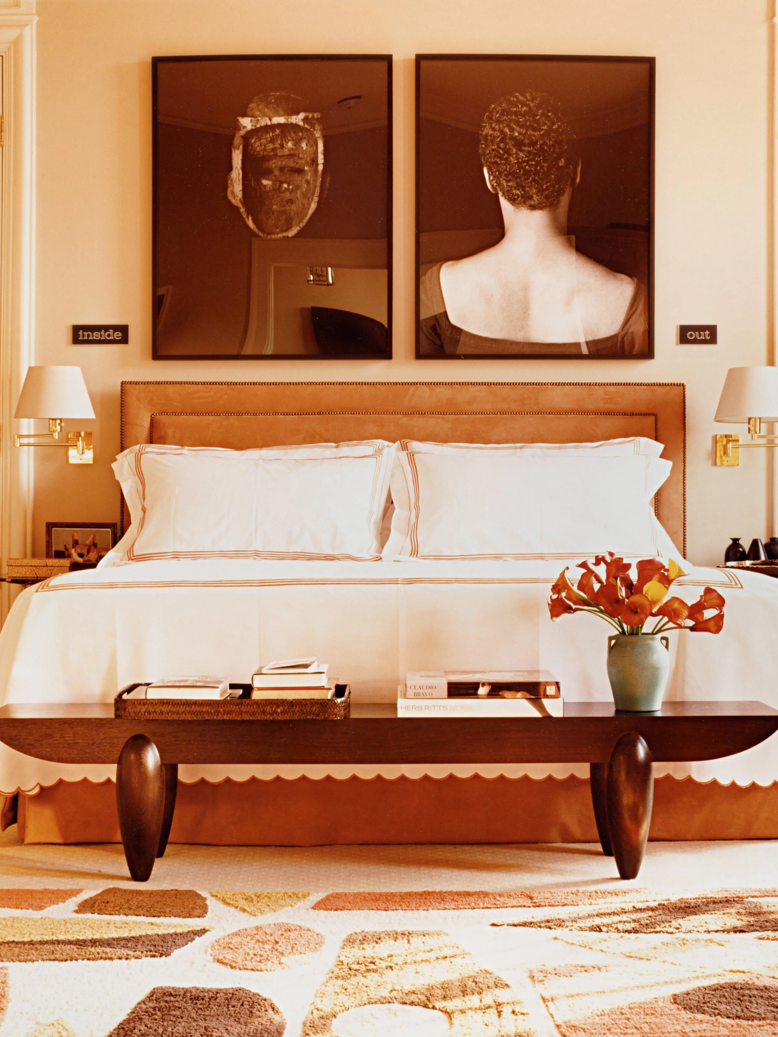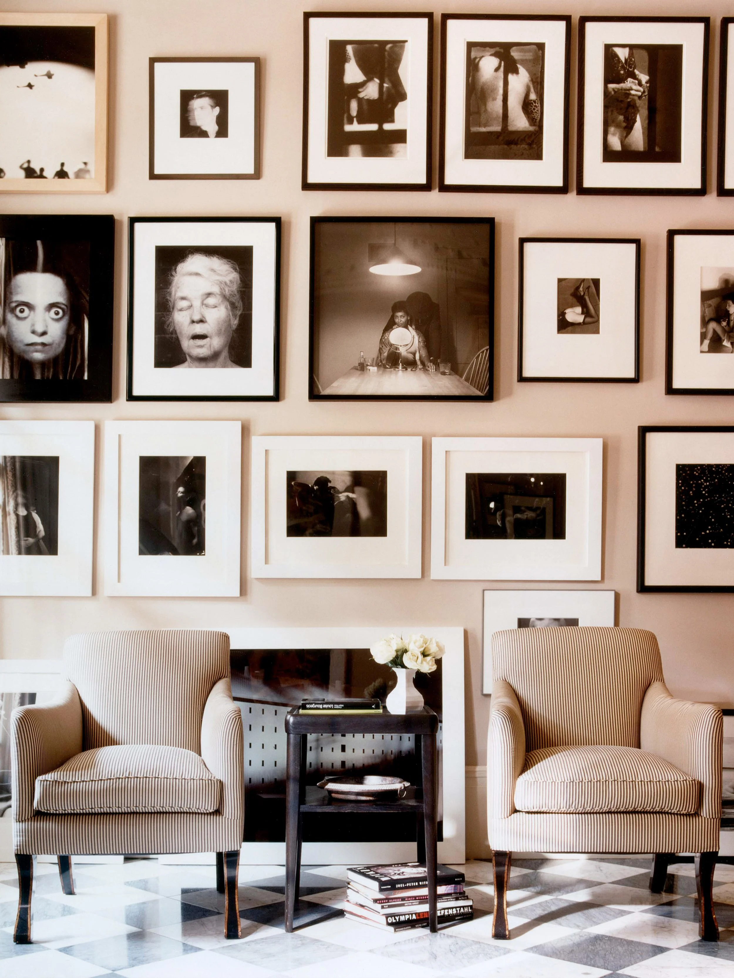 The interiors of this 1828 French Empire mansion were designed to complement its elaborate neoclassical millwork while showcasing the owner’s collection of contemporary art and photography. Eclectic furnishings—from Louis XVI to mid-20th-century modern—are set against a neutral palette, creating a refined backdrop that highlights the artwork while preserving the home’s historic character.